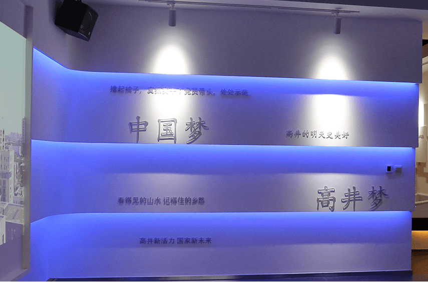 高井党建馆位于高井村委会三楼,占地面积450平方米,共分为序厅、站起来、富起来、强起来、高井党校5个部分。党建馆利用了平面展示、实物展陈、电子投影、互动信息查询系统、电子书、多屏投影等多种形式展现出高井党建工作开展情况,并将进一步其打造成为基层党建及党员教育、凝聚党心民心的阵地。高井党建馆按照十九大作出的战略部署,做好党建业绩展示,凝聚党心民心,为实现党的“两个一百年”庄严承诺而作出高井党组织和全体党员的奉献!