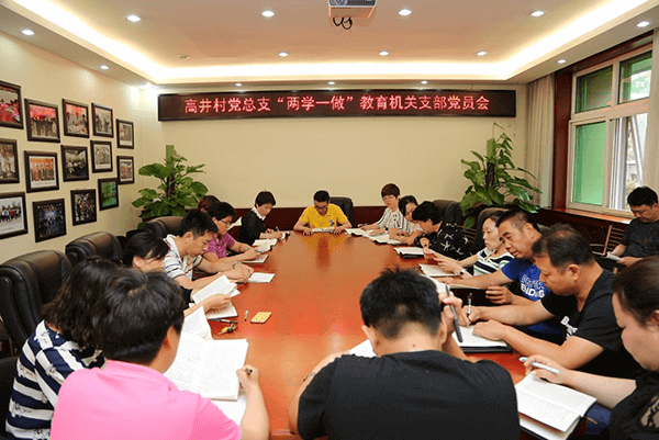 2016年6月12日,高井村党总支两委班子“两学一做”学习教育座谈会在北花园村委会大楼举行。两委班子成员悉数发言,从自己所负责的具体工作出发,结合“两学一做”学习教育的要求,形成了“学习就是发展力”的主题认知,并对下一步“两学一做”学习教育作了具体的细化布置。
