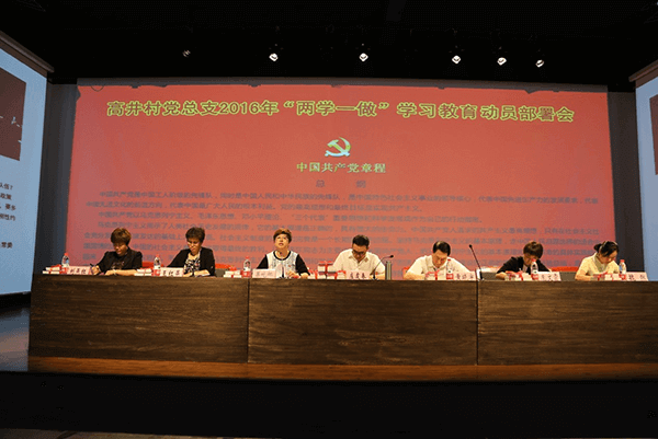 2016年5月24日上午,中共北京市朝阳区高碑店乡高井村党总支在“高井道德讲堂”对中央要求的“两学一做”学习教育做出动员部署。“两学一做”学习教育,具体指的是:1、学习中国共产党党章党规;2、学习贯彻习近平总书记系列重要讲话精神;3、做合格党员。