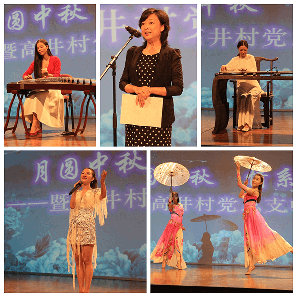 明月几时有,把酒问青天,不知天上宫阙,今夕是何年……一曲悠扬的古诗词,拉开了高井中秋诗会的序幕。诗会第一板块的内容,是特邀嘉宾彭坤老师娓娓道来讲述中秋节的由来和习俗。随后是古筝独奏《春江花月夜》和《女儿国》、古琴独奏节目《流水》和《明月几时有》、歌唱类节目《明月几时有》和《阿爸》,以及舞蹈节目《点绛唇》。
