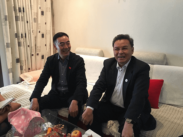 高井村党总支书记庄虔春(右)北花园村党总支书记谭志亮(左)联袂主持座谈会